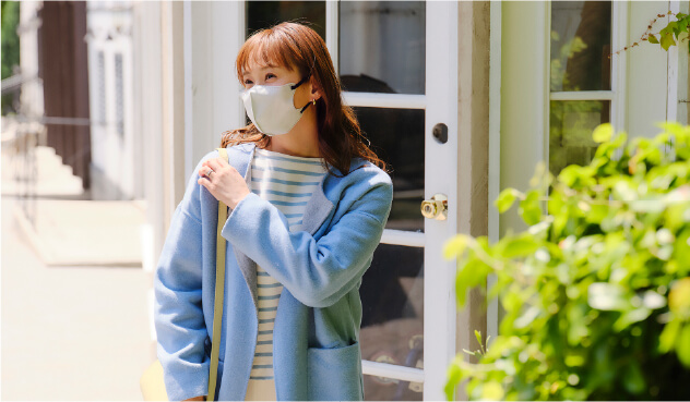 肌を明るく魅せるライトグレーに、オシャレな印象を与えるブラックの耳ゴムカラー。