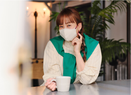 イエベ肌になじみやすいベージュに、かわいい印象を与えるワインレッドの耳ゴムカラー。